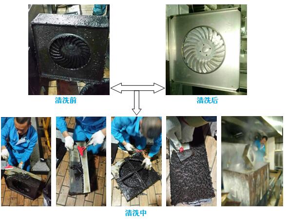 清洗范圍:油網(wǎng)、油煙管、排煙罩、煙道、風(fēng)機(jī)、灶臺(tái)、油煙凈化器等
