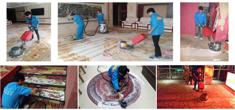 使用設(shè)備:地毯干洗機、吸塵吸水機、梳毛機等。