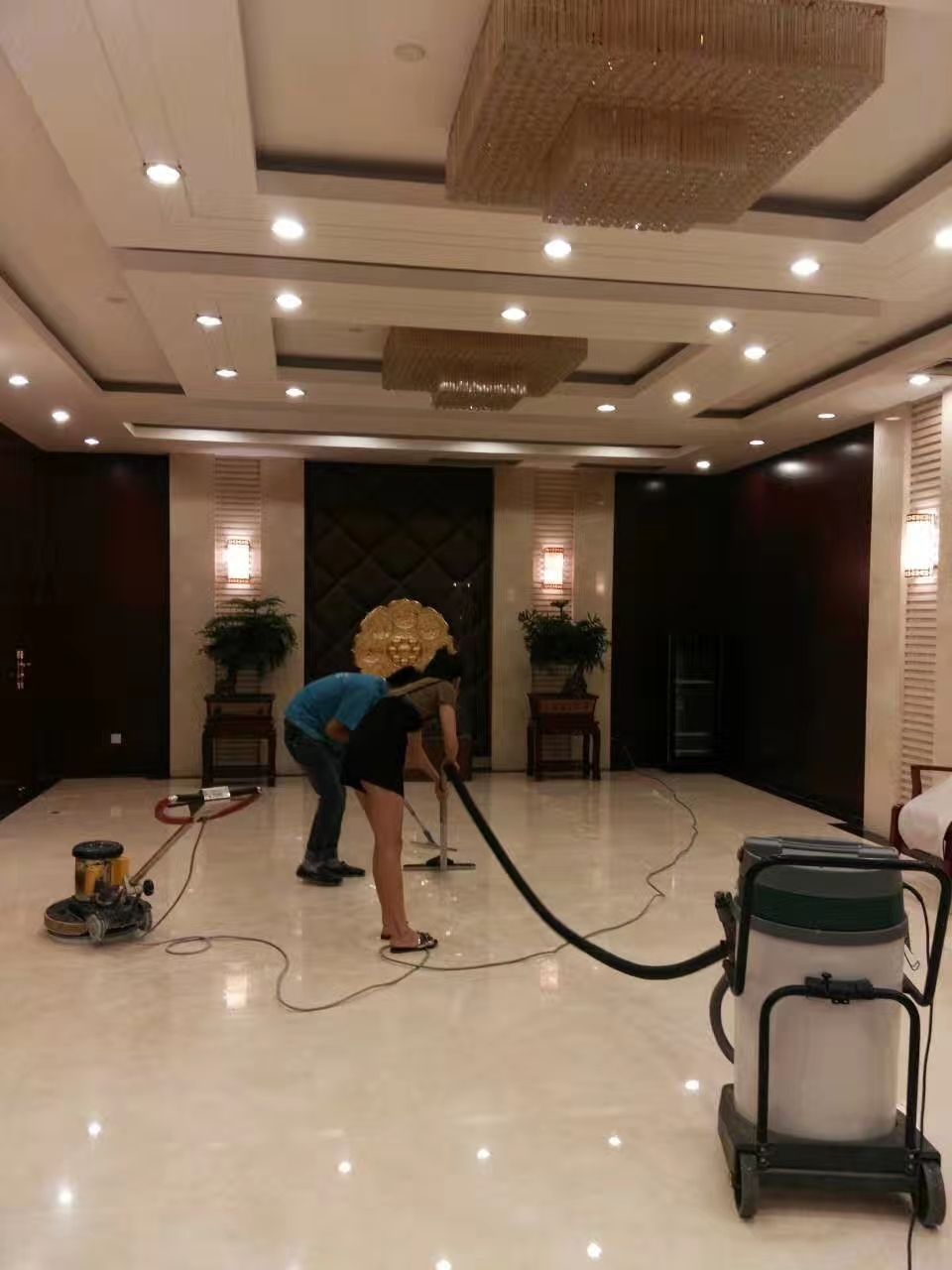 西安保潔公司的地板打蠟是對實木地板、塑膠地面、石材地面等,在其表面涂上一層蠟層,蠟固化后隔絕空氣、水氣、灰塵,同時起到防滑、防磨損、防靜電的作用,從而更好地保養(yǎng)地板,延長地板的使用壽命。打蠟分為打固體蠟和液體蠟兩種。地板打蠟需有專業(yè)人員打蠟,蠟層、蠟液要分布均勻、厚度適中,這樣達(dá)到地板亮麗光潔的效果。清除地板頑固污漬,通過打蠟使材料本身與空氣隔絕,減少因氧化或接觸空氣中的有害物質(zhì)對材料造成的損害,達(dá)到延長材料使用壽命和美觀光潔的目的。 更重要的是其形成的鏡亮表面特別持久耐用,能防止洗滌劑、劃痕、滑擦、鞋跟磨擦等傷害,同時經(jīng)拋光后,蠟面更光更硬及更耐行。