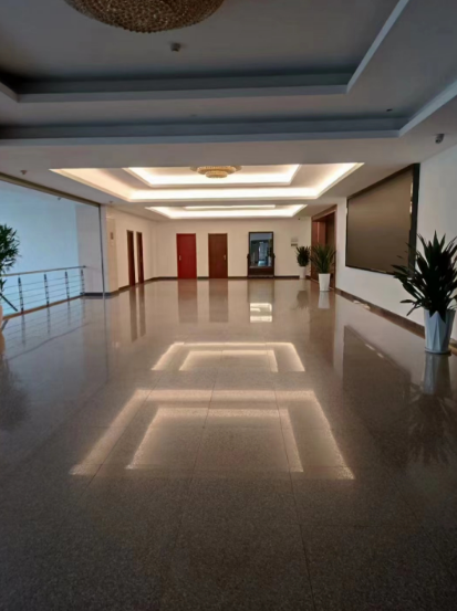 經(jīng)過(guò)上述工藝之后,就可以進(jìn)行結(jié)晶處理了,通過(guò)設(shè)備加壓,低速打磨,使劑品產(chǎn)生熱化反應(yīng),使地面形成防滑的堅(jiān)硬鏡面。